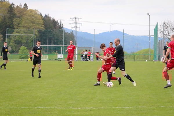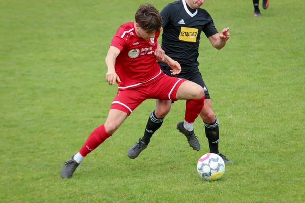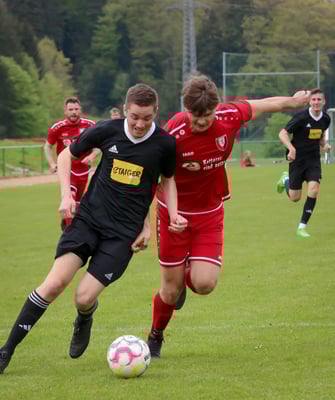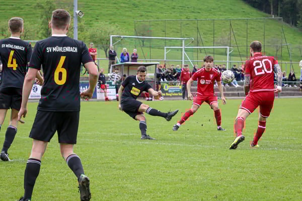Dabei lief es über die gesamte Spielzeit nicht rund für die Gäste um Trainer Patrick Weis. Man tat sich extrem schwer, mit den hoch motivierten und giftig auftretenden Gastgebern. Zudem musste schon nach 12 Minuten mit Matthias Lehmann eine wichtige Stütze in der SVS-Defensive verletzt runter. Außer einem eher harmlosen Kopfball durch Julian Neumaier in der 17. Minute kam nach vorne kaum etwas von den Gästen. Stattdessen war es immer wieder der engagierte SV Mühlenbach, der sich die Bälle im Mittelfeld erkämpfte und zu gefährlichen Torchancen kam. In der 19. Minute hatte Mühlenbachs Felix Orthey noch Pech, als sein Schuss aus rund 20 Metern knapp über das Tor ging. Zwei Minuten später lohnte sich das rigorose Nachsetzen gegen eine nachlässige SVS-Defensive für die Gastgeber. Fabian Müller erkämpfte sich den Ball auf der rechten Seite und flankte auf Jürgen Neumaier, der zum 1:0 verwandelte. Auch in der Folge drängte Mühlenbach auf das 2:0 und wurde dafür belohnt. In der 30. Minute wurde Mühlenbachs Michael Vollmer mustergültig bedient und vollstreckte frei vor dem Tor zum 2:0. Auch danach konnte sich der Tabellenführer kaum aus dem Druck der Mühlenbacher befreien, kam dann aber in der 37. Minute aus heiterem Himmel zum Anschlusstreffer. Ein ansehnlicher Fallrückzieher von Marco Vetter landete zum 2:1 im Netz. Die Freude über den Treffer währte allerdings nicht lange. In der 41. Minute sah Vetter nach einem Foul an der Mittellinie die Rote Karte. Als dann Jürgen Neumaier in der zweiten Minute der Nachspielzeit in Hälfte eins den nächsten groben Schnitzer in der Steinacher Defensive nutzte und mit seinem zweiten Tor zum verdienten 3:1 traf, sah es endgültig nach einem rabenschwarzen Tag für den SVS aus.
