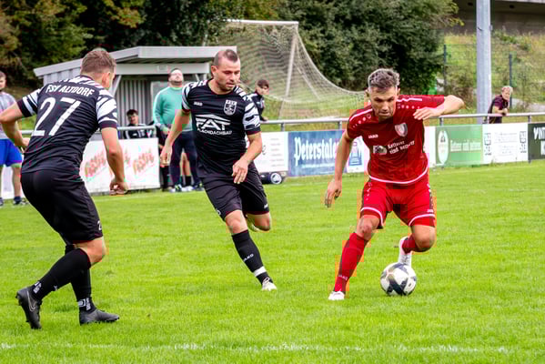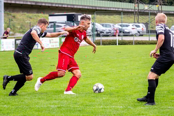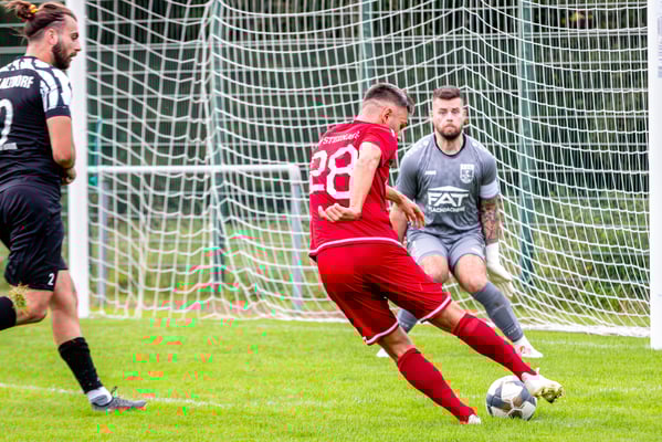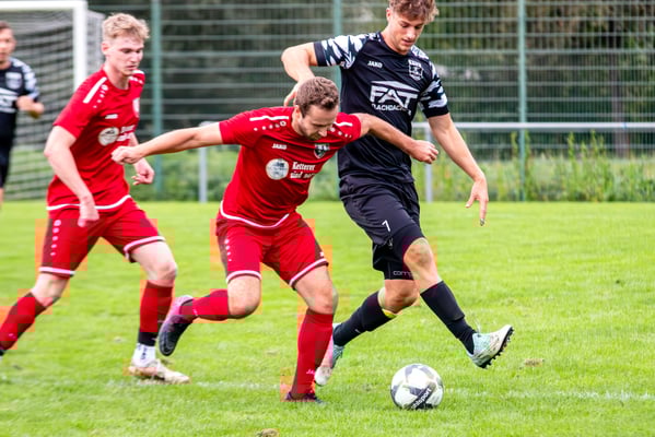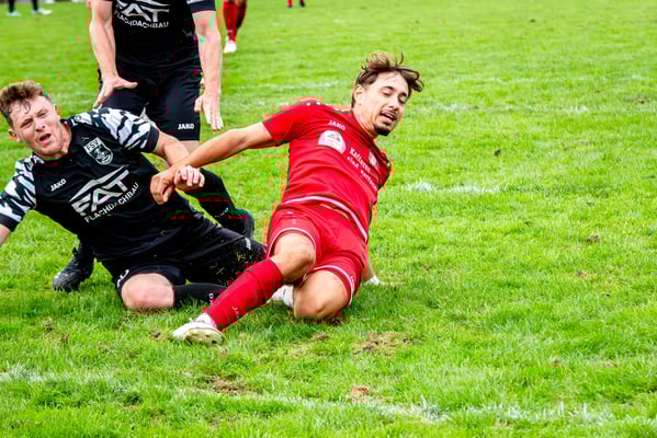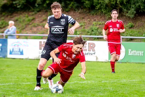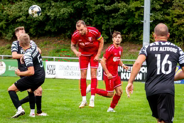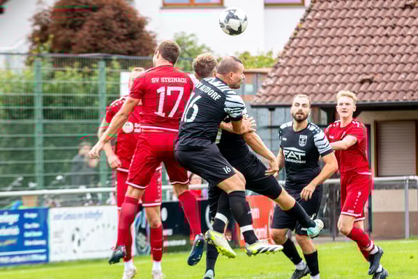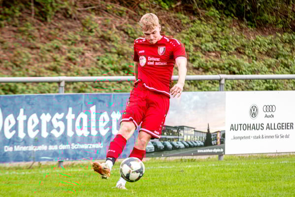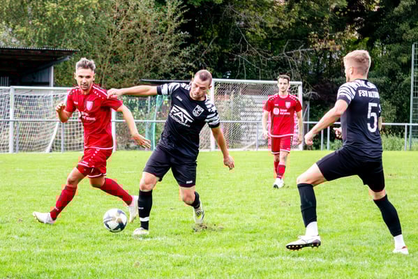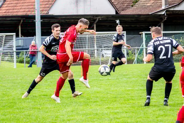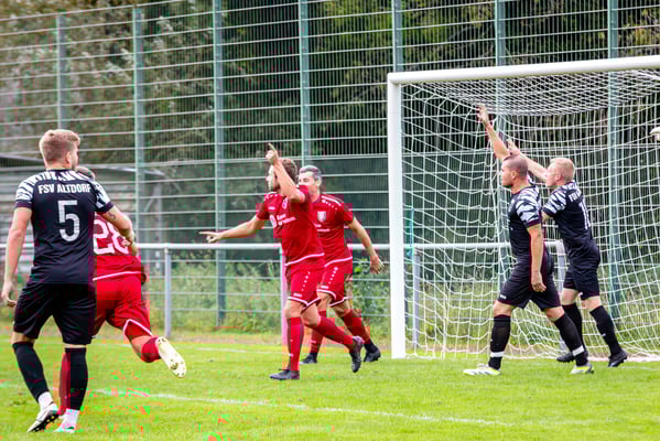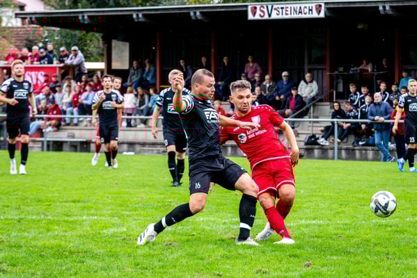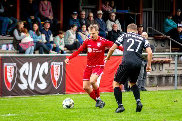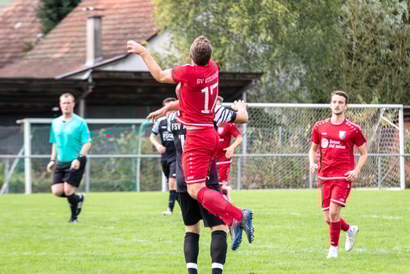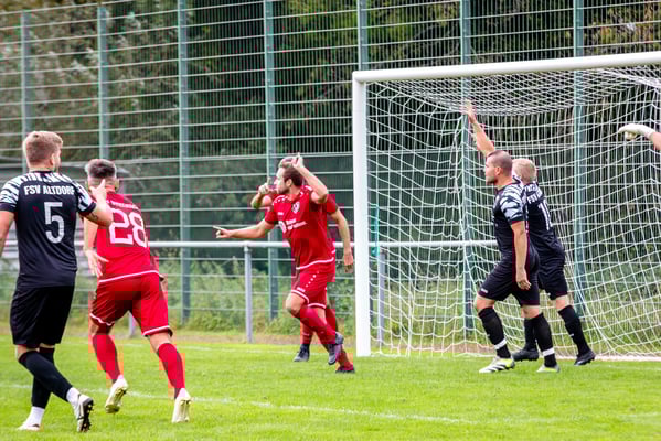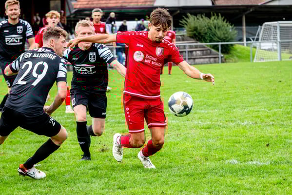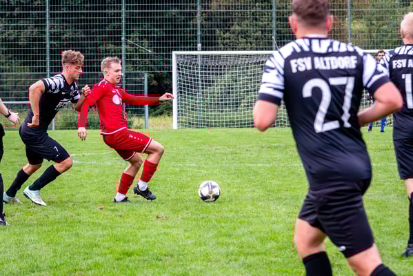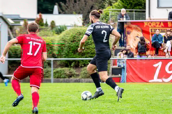 Die erste Chance des Spiels gehörte den Gastgebern. In der siebten Minute legte Nick Ketterer auf den spielenden Co-Trainer Marco Vetter ab, doch FSV-Keeper Dennis Fietzeck parierte stark. Auch die zweite Großchance in der 17. Minute gehörte Vetter, diesmal legte er den Ball knapp neben das Gästetor. Wie so häufig in dieser Saison machten es die Gäste mit der ersten Torgelegenheit besser und gingen in der 20. Minute durch einen strammen Distanzschuss aus dem Halbfeld durch Karl Metzger in Führung. Die Antwort der Gäste folgte prompt, als ein verunglückter Torschuss von Marius Matt vom Altdorfer Florian Karl ins eigene Tor abgelenkt wurde. Die Gastgeber blieben dran und hatten nur eine Minute später wieder eine top Torchance durch Marco Vetter. Aber auch diesmal legte er den Ball knapp am langen Pfosten vorbei. In der 28. Minute setzte sich wieder Vetter auf der linken Seite durch und flankte auf Silas Schwendemann im gegnerischen Fünfmeterraum, doch er konnte den Kopfball nicht gut genug platzieren. Mitten in die Angriffsbemühungen der Hausherren folgte der nächste Rückschlag. Eine verunglückte Klärungsaktion von Noah Schwendemann landete ebenfalls im eigenen Tor und brachte Altdorf wieder mit 2:1 in Führung. Auch diesmal war die direkte Chance zum Ausgleich da, doch Marius Matt wurde an der Strafraumgrenze im letzten Moment am Abschluss gestört. Altdorf blieb vor allem über den agilen Maximilian Junele auf der linken Seite und Karl Metzger im Zentrum gefährlich. Letzterer hatte in der Nachspielzeit der ersten Hälfte eine hervorragende Gelegenheit, auf 3:1 zu erhöhen. Bereits am Steinacher Schlussmann Mario Echle vorbei wurde der Winkel zu spitz und Metzger traf nur den Außenpfosten.