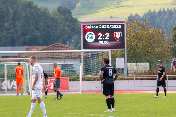 Die zweite Halbzeit startete verhalten. Der SV Haslach begnügte sich mit der Verwaltung des Vorsprungs, während der SV Steinach nicht sofort zwingend genug auftrat. Haslach verpasste es in dieser Phase, das dritte Tor nachzulegen und damit die Entscheidung herbeizuführen. Der Umschwung zugunsten des SVS kam durch zwei entscheidende Standardsituationen, die von Fabio Vögele mustergültig vor das Haslacher Tor getreten wurden. In der 65. Minute konnte Haslachs Torhüter Tobias Haag den Ball nicht festhalten. Marius Matt lauerte am langen Pfosten und staubte zum 2:1 Anschlusstreffer ab. Fünf Minuten später kam erneut ein Vögele-Freistoß aus ähnlicher Position herein. SVS-Kapitän Julian Neumaier hielt den Fuß rein, traf aber nur die Unterkante der Latte. Wieder hatte Steinach Glück mit dem Abpraller. Der Ball landete bei Philipp Schwörer, der zum 2:2 Ausgleich einschob (70.). Der schnelle Doppelschlag durch die Standards veränderte kurzzeitig die Dynamik des Spiels. Der SV Haslach wirkte angeschlagen, während der SVS in den Folgeminuten sogar auf den Derbysieg drängte. In der hektischen Schlussphase hatten dann wieder die Gastgeber die besseren Chancen zum Sieg, doch es blieb beim 2:2-Unentschieden.