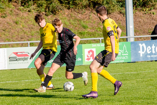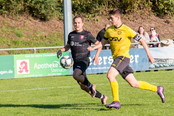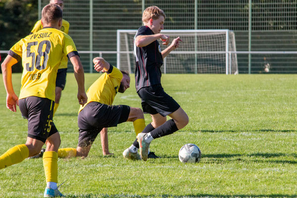 Die Gäste wurden nun mutiger und setzten durch Fabian Till erste offensive Akzente. In der 21. Minute belohnten sie sich für ihren zunehmenden Offensivdrang. Raphael Riethmüller setzte sich auf der rechten Seite in einer starken Einzelaktion durch und schloss unhaltbar ins lange Eck zur 0:1 Führung ab. Mit dem Tor im Rücken gewann Sulz an Sicherheit, während Steinach die Spielkontrolle aus der Anfangsphase verlor. Die große Chance zum Ausgleich bot sich Robin Schmidt in der 28. Minute, doch erneut warf sich Torhüter Marrek in den Schuss und verhinderte das 1:1. Ein weiterer Rückschlag für die Hausherren folgte in der 34. Minute, als Tim Schwendemann verletzungsbedingt ausgewechselt werden musste. Für ihn kam Philipp Schwörer in die Partie. Bis zur Pause blieben die Gäste das gefährlichere Team und gingen mit einer verdienten Führung in die Kabine.