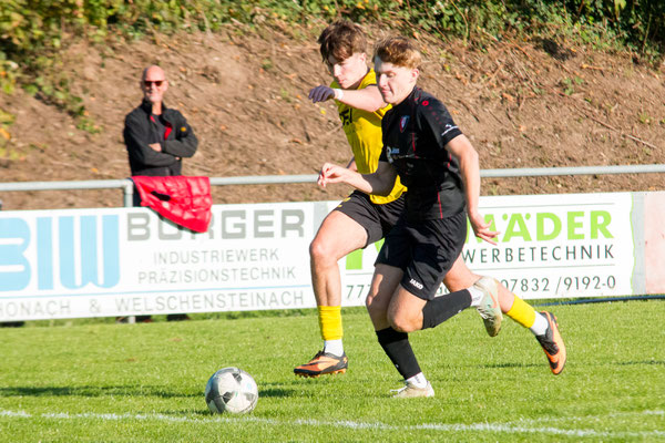 Dabei konnte der SVS, der auf den gesperrten Robin Blum und den verletzten Maximilian Faltin verzichten musste, nach den starken Ergebnissen der Vorwochen eigentlich befreit aufspielen. Die Partie begann entsprechend mit viel Ballbesitz für die Gastgeber, die geduldig nach einer Lücke in der kompakt stehenden Sulzer Defensive suchten. Die Gäste, ihrerseits mit dem Selbstvertrauen aus einem Sieg gegen den Zeller FV angereist, verteidigten jedoch souverän, sodass Höhepunkte zunächst ausblieben. Die erste nennenswerte Chance ergab sich in der elften Minute für Steinach, als Marius Matt nach einem Freistoß schnell reagierte und Robin Schmidt freistehend zum Schuss kam, jedoch an Sulz-Torwart Simon Marrek scheiterte.
