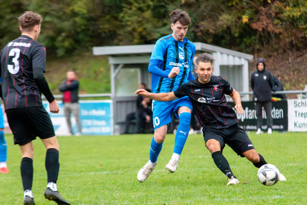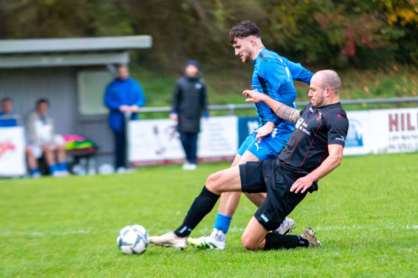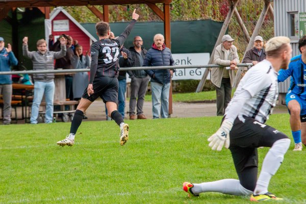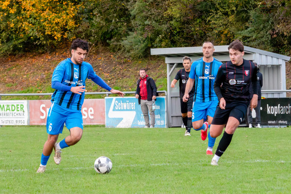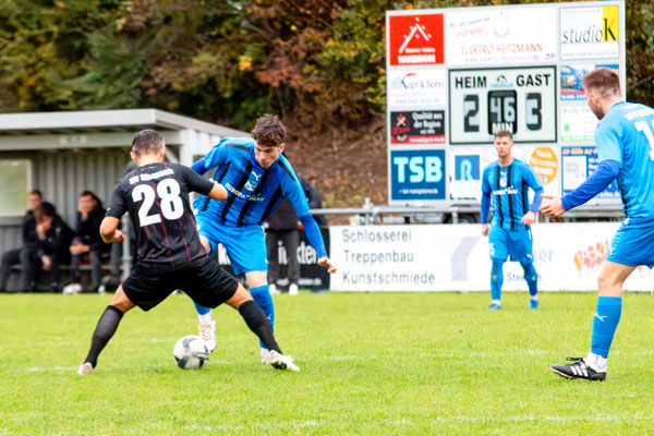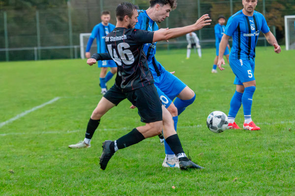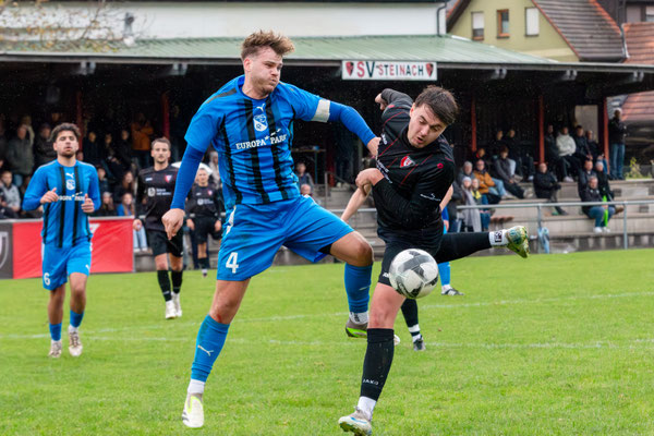 Nach einer intensiven Anfangsphase brachte Santino Größer nach Flanke von Nando Schoner die Gäste in der elften Minute in Führung. Schoner selbst erhöhte nach einem Steinacher Fehler auf 0:2. Ein Hoffnungsschimmer kam in der 21. Minute aus dem berühmten Nichts. Nach einem Freistoß von Robin Blum legte Julian Neumaier ab auf Marius Matt, der zum Anschluss einschob (1:2). Dieser Treffer half den Gastgebern, sich etwas aus der Umklammerung zu befreien. Nach knapp einer halben Stunde musste Gästetrainer Lucca Grösser seinen Torwart auswechseln. Tobias Eismann musste gegen den heraneilenden Kai Schwendemann Kopf und Kragen riskieren und verletzte sich dabei an ersterem. (An dieser Stelle gute Besserung nach Rust). Für ihn kam Pascal Metzger in die Partie. In der 37. Minute traf Kai Schwendemann zum 2:2 Ausgleich, nachdem er schnell reagiert und einen Rust-Freistoß in der eigenen Hälfte abgefangen hatte. Es war nicht klar, ob der Freistoß bereits ausgeführt war, die Gäste protestierten vehement. Der Treffer wurde kontrovers diskutiert, zwischenzeitlich zurückgenommen und am Ende doch gegeben. Steinach war wieder im Spiel. Kurz vor der Pause gingen die Gäste allerdings erneut in Führung, als Bastian Bodnik ein Laufduell gewann und nach Vorlage von Schoner zum 2:3 traf. Steinach hatte sich wieder um den Lohn der Aufholjagd gebracht.