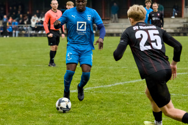 Die Partie, die nach drei Niederlagen und einer spielfreien Woche für den SVS von großer Bedeutung war, begann zwar mit einem leichten Übergewicht der Gäste, doch die Hausherren nutzten ihre erste gute Gelegenheit eiskalt zur Führung. In der 14. Minute schloss Kai Schwendemann nach einer präzisen Vorlage von Fabio Vögele erfolgreich zum 1:0 ab. Nur drei Minuten später bewahrte Mario Echle im Steinacher Tor mit einer Fußabwehr gegen den pfeilschnellen Kevin Kopf, einen ständigen Unruheherd der Gäste, die knappe Führung. Die Gastgeber kamen nun besser ins Spiel und drängten nach einem weiteren guten Umschaltmoment über Vögele, Schwendemann und Robin Schmidt auf den schnellen Doppelschlag. Dieser gelang in der 21. Minute. Ein Freistoß von Fabio Vögele aus halblinker Position segelte an Freund und Feind vorbei ins lange Eck zum 2:0. In diesen starken Minuten belohnte sich der SVS für seinen engagierten Auftritt und lauerte weiter auf Konter, unterstützt durch ein immer wieder erfolgreiches Pressing.