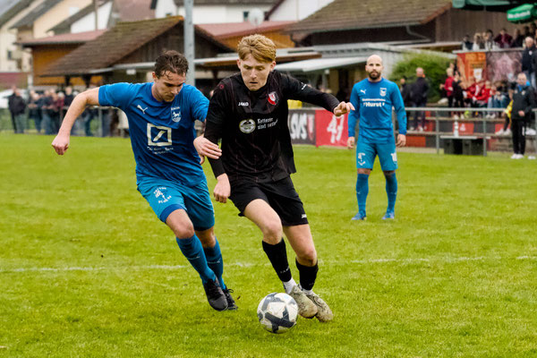 Doch zur Unzeit folgte in der 29. Minute der Anschlusstreffer für die Gäste. Nach einem eigenen Freistoß tief in der Rammersweirer Hälfte gab Steinach die Restverteidigung auf. Anas Atakora schickte Kevin Kopf auf die Reise, der sich im Laufduell gegen Vögele durchsetzte und zum 2:1 einschob. Plötzlich waren die Gäste wieder am Drücker. Trotz guter Chancen für Rammersweier kurz vor der Pause, darunter ein strammer Abschluss von Fabian Göhr, nahmen die Steinacher ihre knappe Führung mit in die Kabine.