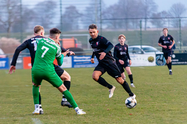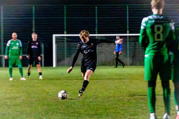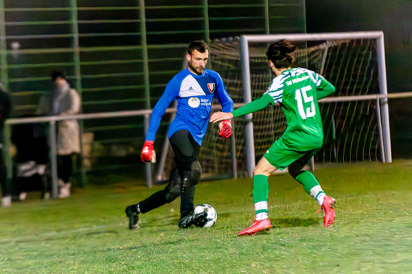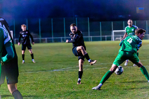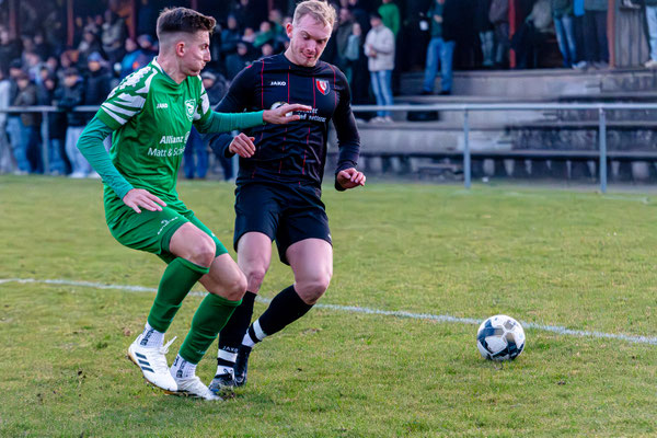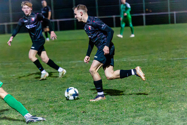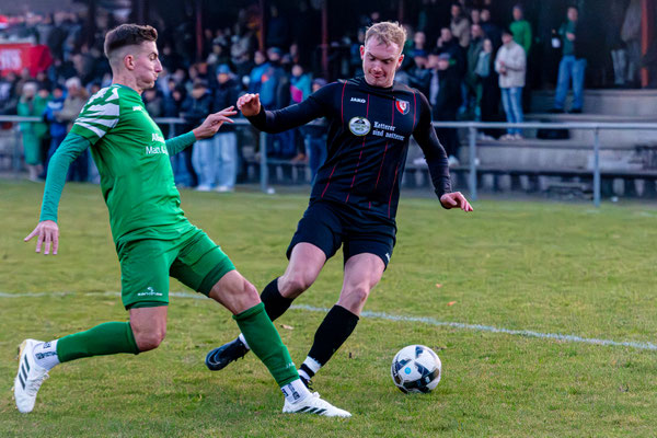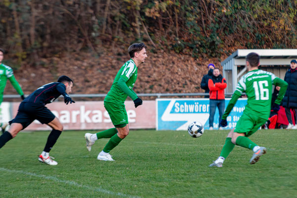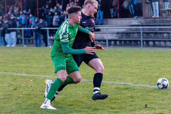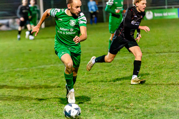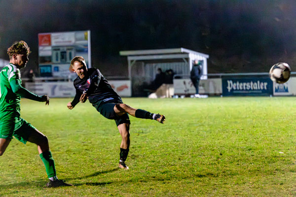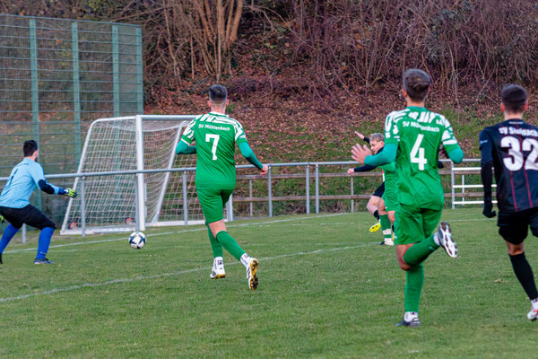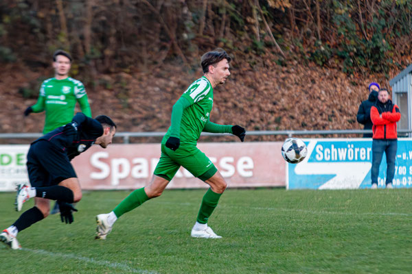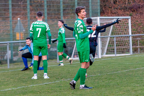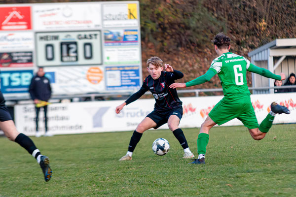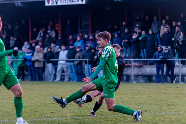 Folgerichtig fiel in der 17. Minute der Führungstreffer durch eine sehenswerte Co-Produktion. Noah Schwendemann erkämpfte sich auf der linken Außenbahn stark den Ball und schlug eine maßgeschneiderte Flanke in die Mitte. Dort stand Leon Schwendemann goldrichtig und vollstreckte eiskalt zum 1:0 für die Hausherren. Nur eine Minute später hatten die Steinacher Fans den Torschrei schon wieder auf den Lippen. Kai Schwendemann tauchte völlig frei vor dem Mühlenbacher Gehäuse auf, brachte jedoch nicht genügend Druck hinter den Ball, sodass SVM-Schlussmann Mathias Klausmann den Doppelschlag zum 2:0 verhindern konnte.