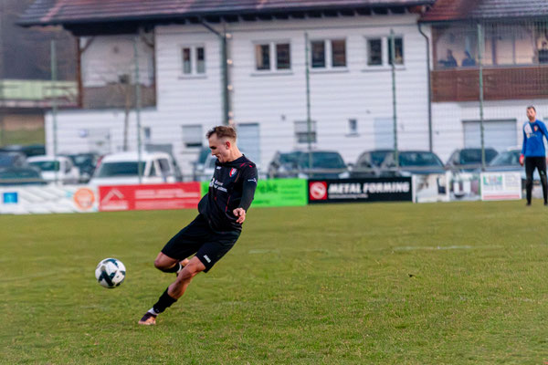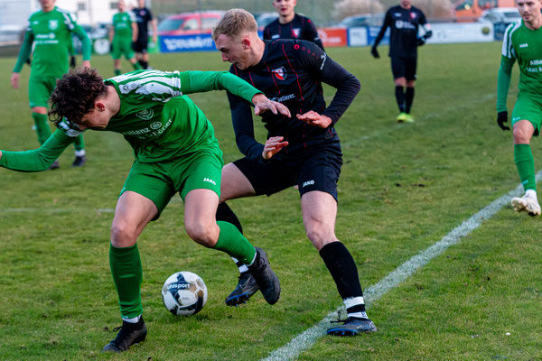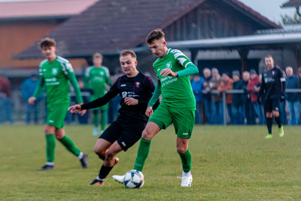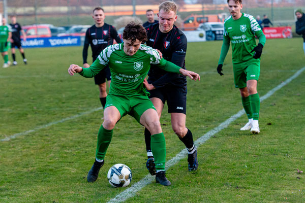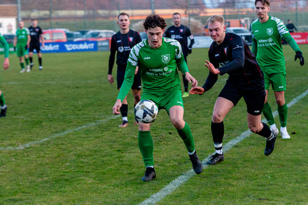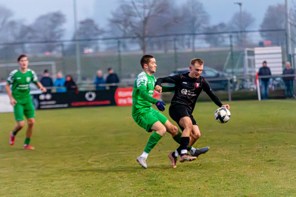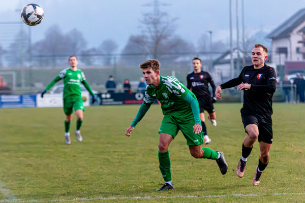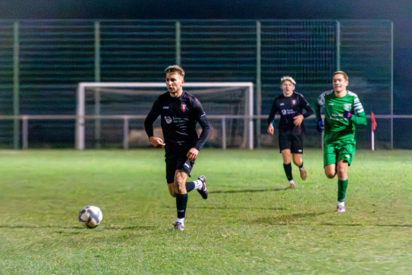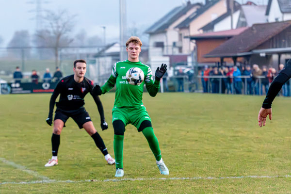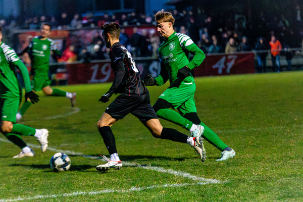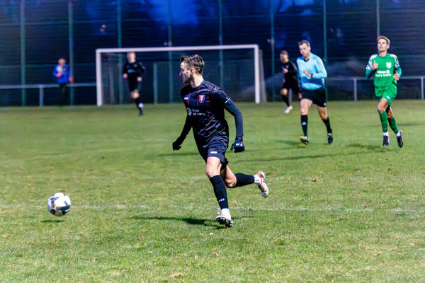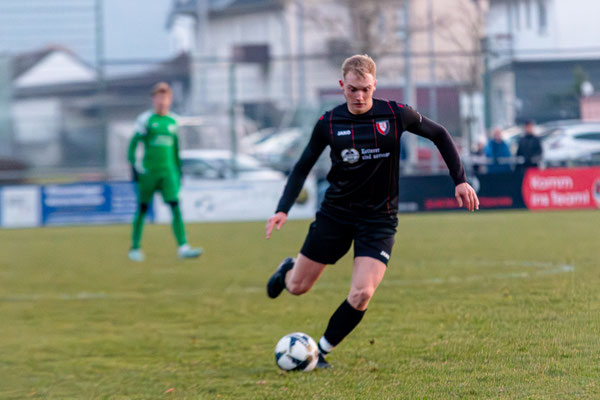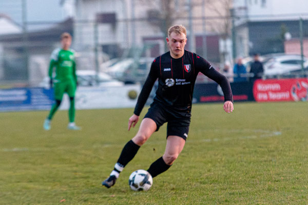 Bis zur Pause bestimmten die Gastgeber das Geschehen. Die Defensive stand sicher und ließ außer einem zur Ecke geklärten Abschluss von Felix Orthey (28.) kaum etwas zu. Offensiv fehlte allerdings oft die letzte Konsequenz, um aus der Überlegenheit mehr Kapital zu schlagen. Ein Kopfball von Kapitän Julian Neumaier nach einer Ecke segelte über den Querbalken (35.), sodass es nur mit einer knappen Führung in die Kabinen ging.
