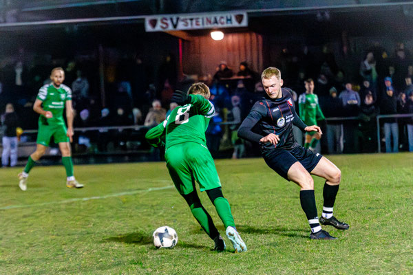 Erst in der Schlussviertelstunde befreite sich der SV Steinach aus der Umklammerung und drängte doch noch auf den Heimsieg. Die Riesenmöglichkeit dazu bot sich in der 79. Minute. Der gerade erst eingewechselte Carel Heitzmann tankte sich mit dem ersten Ballkontakt stark im Strafraum durch und legte den Ball mustergültig auf den völlig freistehenden Robin Schmidt ab. Aus kürzester Distanz schoss dieser jedoch über das Tor. Das hätte das 2:1 sein müssen. Kurz vor dem Abpfiff musste sich Mühlenbachs Keeper Klausmann noch einmal ganz lang machen, um einen gefährlichen Freistoß von Fabio Vögele zu parieren (88.).