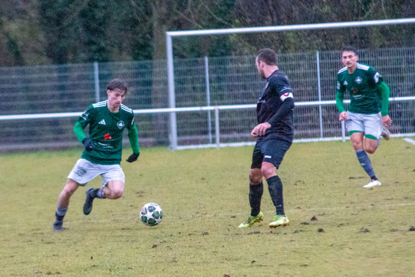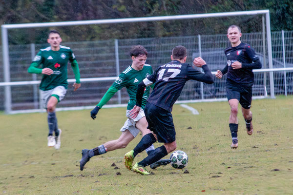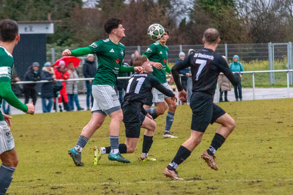 Dabei ging es gut los für die Gäste aus dem Kinzigtal. Trotz der üblen Platzverhältnisse und der regenbedingten Rutschpartie schafften es die Gäste, so etwas wie Spielkontrolle zu erarbeiten und sich immer wieder gut vor des Gegners Tor zu kombinieren. Schon nach drei Minuten tauchte Tim Schäffner das erste Mal gefährlich vor dem Diersheimer Tor auf, konnte aber rechtzeitig geblockt werden. Zwei Minuten später zog Robin Schmidt aus 16 Metern ab und zwang Diersheims Torhüter David Ross zur Parade. Die Gastgeber kamen nach neun Minuten zur ersten Gelegenheit, als Theo Albenesius artistisch abzog, aber das Tor knapp verfehlte. Weiterhin hatte Steinach mehr vom Spiel und Ross musste im letzten Moment vor Fabio Vögele klären (12.).