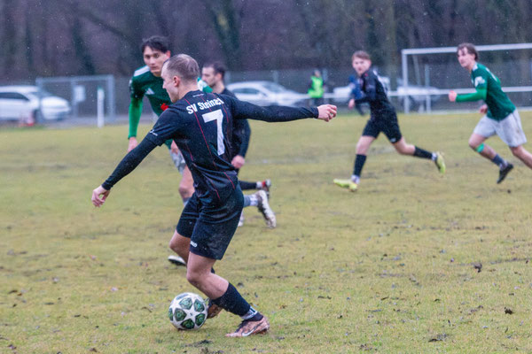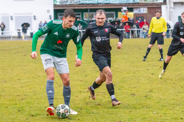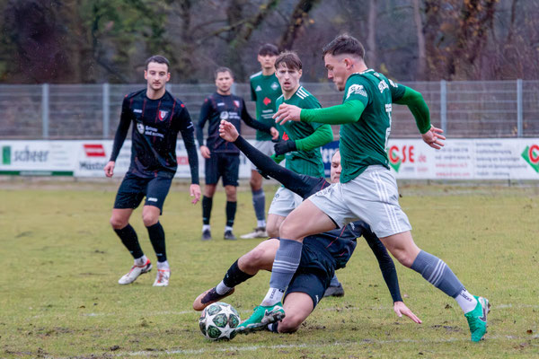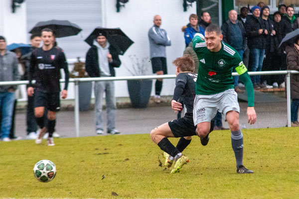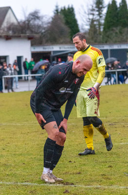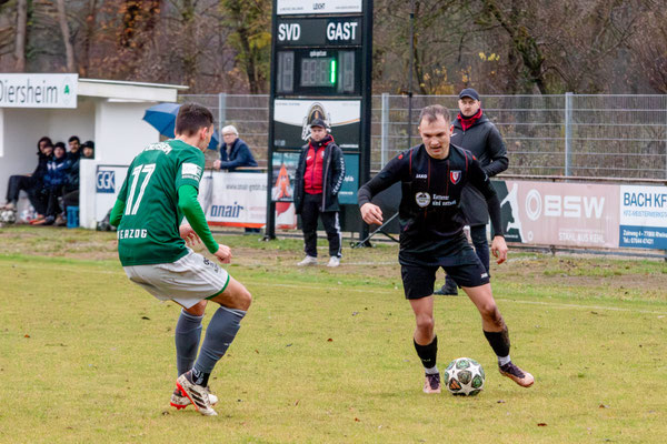Und so wurde die Partie immer mehr zum Abnutzungskampf, in dem die Gastgeber den SVS weitestgehend in der eigenen Hälfte einschnürten. Marcel Schulz setzte in der 69. Minute einen Freistoß für Diersheim knapp daneben, ansonsten verteidigten die Gäste den Vorsprung aber leidenschaftlich. In der 75. schaffte Luca Schwendemann nach Vorarbeit Kai Schwendemann sogar nochmal Entlastung, sein Schuss wurde aber zur Ecke geklärt. In den Schlussminuten war nicht mehr viel Spielkultur zu sehen, ein reines Kampfspiel im Matsch von Diersheim. Letztlich belohnten sich die Gastgeber doch für ihre gute zweite Halbzeit und feierten in der 87. Minute den verdienten Ausgleich. Luca Schröter war nach Flanke von rechts mit dem Kopf zur Stelle und netzte unhaltbar zum 1:1 ein. Doch es sollte noch schlimmer kommen für die Allgaier-Elf. Die Gastgeber wollten nun auch den Sieg. Erst konnte Robin Blum noch stark gegen Schlegel klären, doch in der dritten Minute der Nachspielzeit dann der komplette Knock-Out für den SVS. Wieder bekam man den Ball nicht geklärt und Schröter avancierte mit dem Treffer zum 2:1 zum gefeierten Matchwinner.