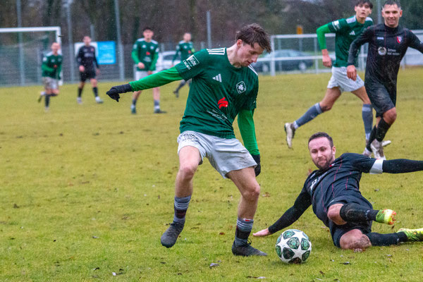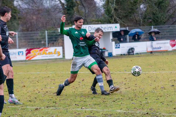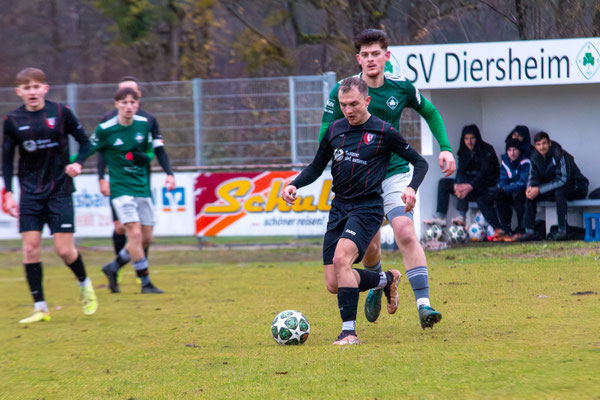Auch in Diersheim kamen die Gastgeber nun deutlich druckvoller aus der Kabine. In der 48. Minute schloss Jannes Schlegel stramm ab und untermauerte den Wunsch nach dem Ausgleich für seine Farben. Erst nach rund zehn Minuten konnten sich auch die Gäste wieder etwas aus der Umklammerung lösen und wieder nach vorne arbeiten. Erste Schlüsselszene war wohl die 53. Minute, als Robin Schmidt frei durch an der Strafraumgrenze gehalten wurde. Statt das Foul, und damit auch die Gelb-Rote Karte für die Gastgeber, anzunehmen, versuchte er den Abschluss und scheiterte zu zentral am gegnerischen Torhüter - weder 2:0 noch Überzahl für die Gäste!