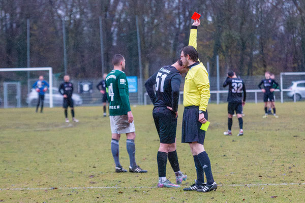 Stattdessen kamen die Gastgeber in der 55. Minute wieder zu einer gefährlichen Doppelchance durch Dennis Schulz, die Steinachs Schlussmann Mario Echle vereiteln konnte. Auch Albenesius’ Schuss aus dem Fallen verfehlte das Steinacher Tor knapp. Nur eine Minute später war Echle gegen den Kopfball von Schlegel zur Stelle. Auf der anderen Seite parierte Ross einen Distanzschuss von Fabio Vögele. Beide Torhüter machten trotz erschwerter Bedingungen einen herausragenden Job. Anders als in der 53. Minute zeigte sich der Schiedsrichter in der 65. Minute konsequent und verwies Tim Schäffner nach einem unnötigen Offensivfoul zu Recht mit Gelb-Rot des Feldes. Fortan mussten die Gäste in Unterzahl gegen anrennende Hausherren kämpfen.