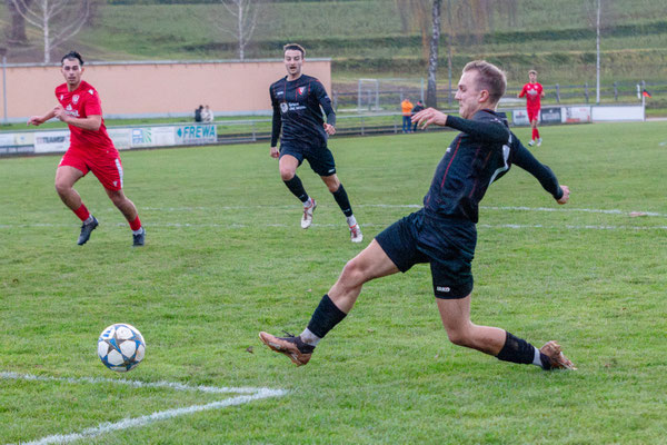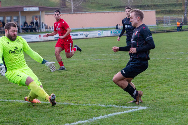 Maximilian Junele legt das 2:0 für den FC Ettenheim/Altdorf auf.