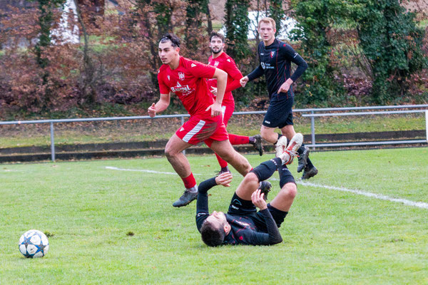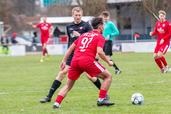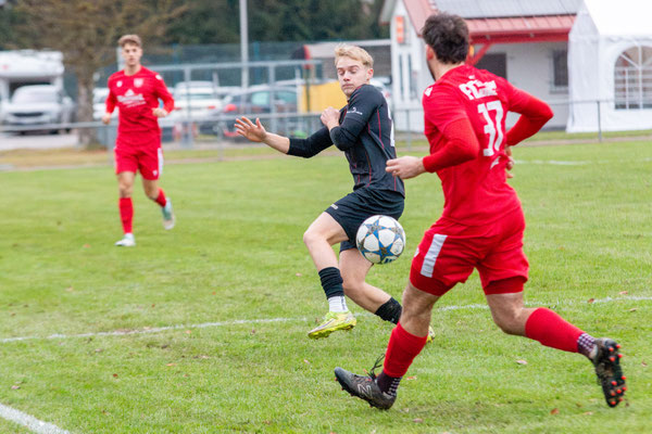 Steinachs Philipp Schwörer hatte eine der wenigen SVS-Chancen in der Anfangsphase. Hier verteidigt durch Ettenheim/Altdorfs Jameel Mohammad Nouri