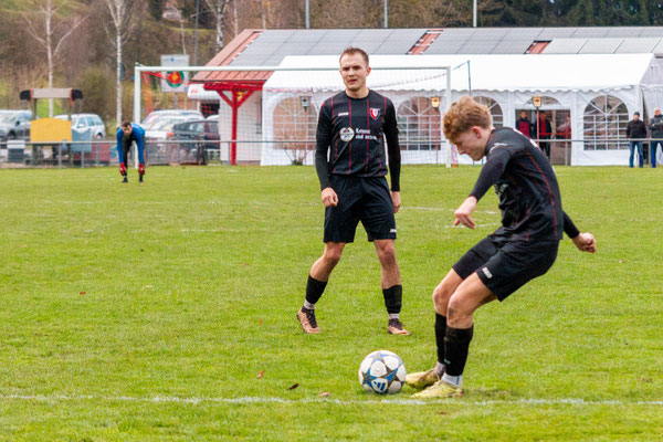 Die nächste Torraumszene in der 24. Minute führte dann zum ersten Tor. Steinach bekam den Ball nicht aus der Gefahrenzone, Maximilian Junele setzte sich im Strafraum mit dem Kopf durch und legte auf Jens Enderle ab, der zur 1:0 Führung für die Spielgemeinschaft einschob. Erstmal schienen die Gäste angesichts des Rückstands nicht sonderlich geschockt. Sie versuchten weiter, ihre wenigen Vorstöße zu nutzen und waren in den Mittelfeld-Duellen ebenbürtig. In der 29. Minute setzte sich Steinachs Robin Schmidt über die linke Seite durch und zwang den Ettenheimer Keeper Rudolf Kanz zu einer starken Parade. In der 37. Minute setzte sich Kai Schwendemann wieder über links durch und wurde an der Strafraumgrenze zu Fall gebracht. Den fälligen Freistoß setzte Fabio Vögele knapp über das Ettenheim/Altdorfer Tor. Die Gastgeber hätten mit dem Halbzeitpfiff durch Junele noch das 2:0 feiern können, wenn nicht sogar müssen, doch der Offensivspieler verfehlte eine Flanke von links nur um Millimeter. Glück für Steinach, dass in der Halbzeitpause vom Ergebnis her noch alles drin war.