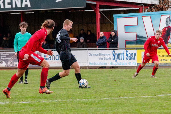 SVS-Trainer Stefan Allgaier musste kurz- und langfristig auf eine Handvoll Stammspieler verzichten, ging aber trotzdem hochmotiviert in den Rückrundenauftakt. Zu Beginn schafften es die Gäste auch, die Partie weitestgehend offen zu gestalten und die spielstarken Gastgeber auf Distanz zu halten. Die SG E/A hatte mehr Ballbesitz und trug ihre Angriffe immer wieder über die Flügel vor, Steinach wehrte um die kurzfristig neu formierte Innenverteidigung alles ab und schaffte auch den ein oder anderen offensiven Vorstoß. Die erste Großchance gehörte dem FC Ettenheim/Altdorf. In der zwölften Spielminute nutzte Marco Karle erstmals die Abstimmungsprobleme in der SVS-Defensive und zog gefährlich ab. Der Schuss ging daneben. In der 15. Minute hatte Philipp Schwörer eine gute Gelegenheit für die Gäste, wurde aber im letzten Moment geblockt.