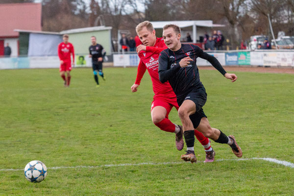 Kai Schwendemann (li.) und sein SVS hielten in der ersten Halbzeit noch gut dagegen. In der zweiten Hälfte dominierten die Gastgeber um Maximilian Junele (re.).